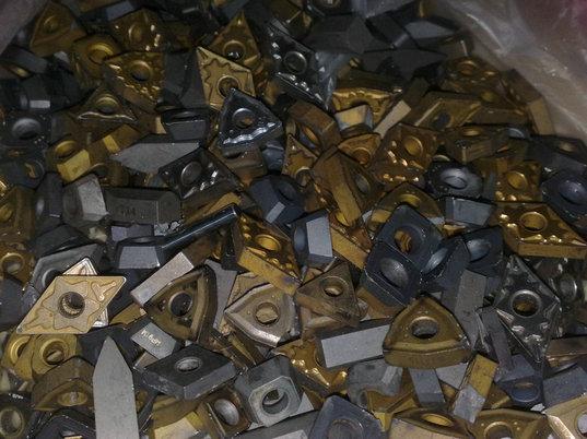 废钨钢的回收:碳化钨废料主要从工具使用者工厂取得。在早期,许多用户认为回收钎焊头是经济的,但由于机夹刀具于1950年代中期开发,因此回收利用夹紧工具是十分可行的,有一个回收利用的过程可以将工具块变为几微米尺寸的粉末,其他替代方式包括化学处理以除去锆等黏合剂并维持完整无损。剩下的微粒用水洗涤并用氢还原或用作@粉。